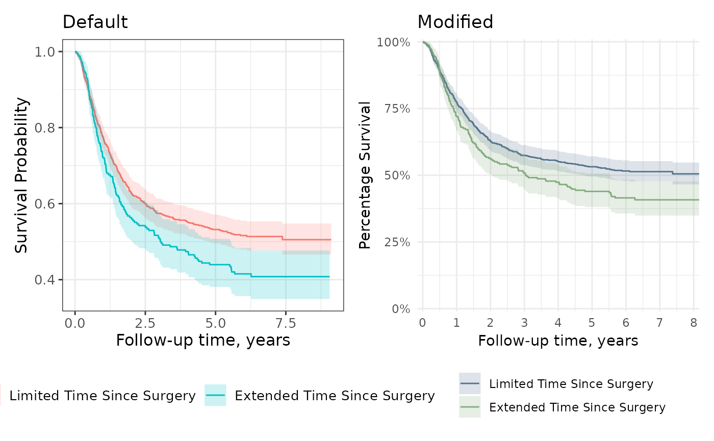 y-axis. In the example below, we utilize scale_ggsurvfit()