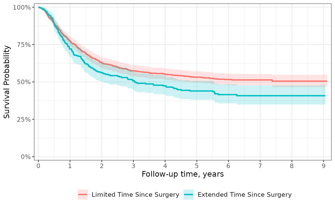 The most common figure created with this package is a survival curve. This scale applies modifications often seen in these figures.