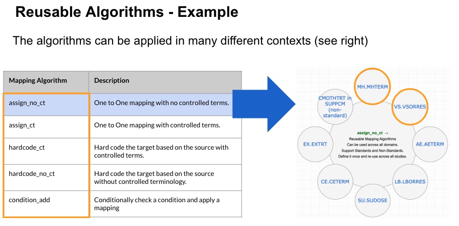 Algorithms can be re-used across multiple SDTM domains.